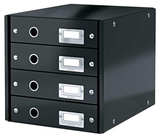Irattároló, laminált karton, 4 fiókos, LEITZ "Click&Store", fekete