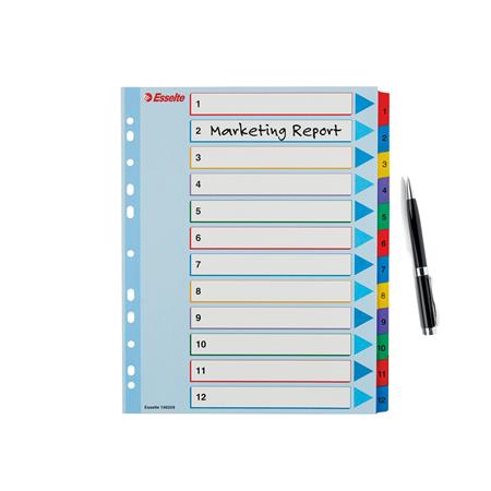 Regiszter, laminált karton, A4 Maxi, 1-12, újraírható, ESSELTE