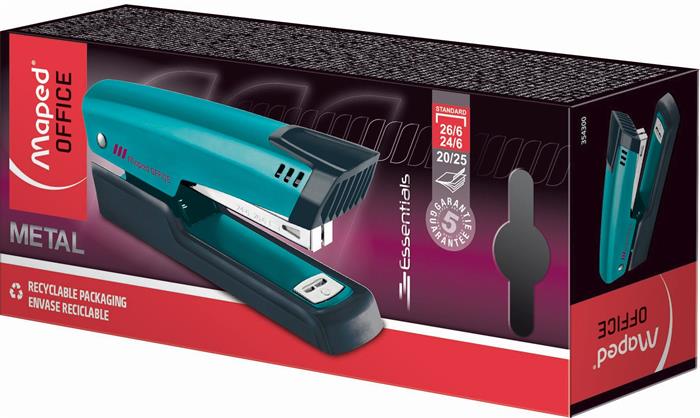 Tűzőgép, 24/6, 26/6, 20 lap, MAPED "Essentials Half-Strip", türkiz