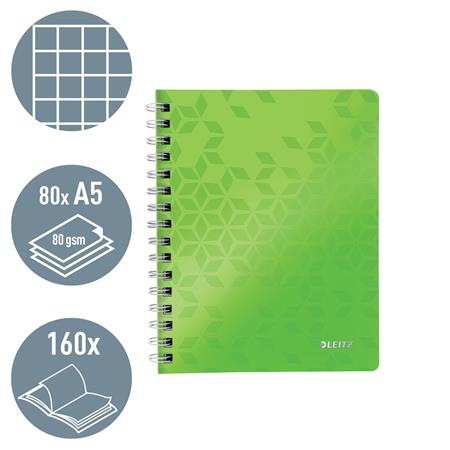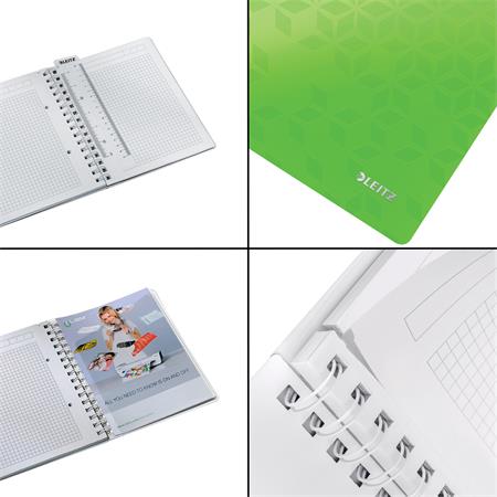 Spirálfüzet, A5, kockás, 80 lap, LEITZ "Wow", zöld