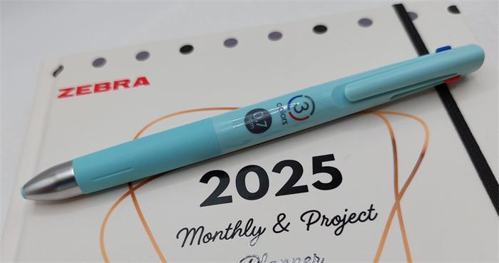 Golyóstoll, 0, 24 mm, nyomógombos, háromszínű, ZEBRA  "bLen 3C", kékeszöld test