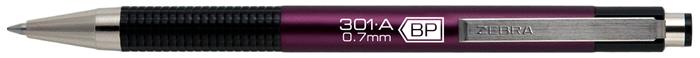 Golyóstoll, 0,24 mm, nyomógombos, mályva tolltest, ZEBRA "F-301 A", kék
