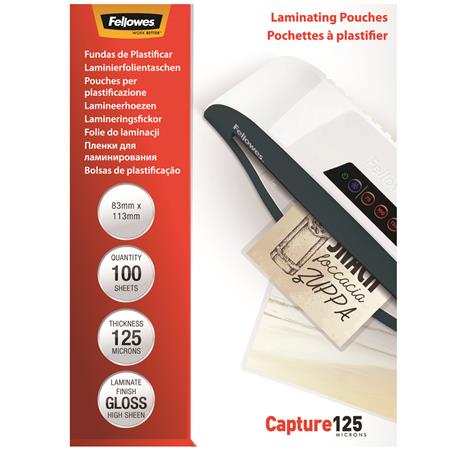 KezdőlapTechnológiaIrodatechnikaLaminálásMeleglamináló fólia, 125 mikron, 83x113 mm, fényes, 100 db, FELLOWES