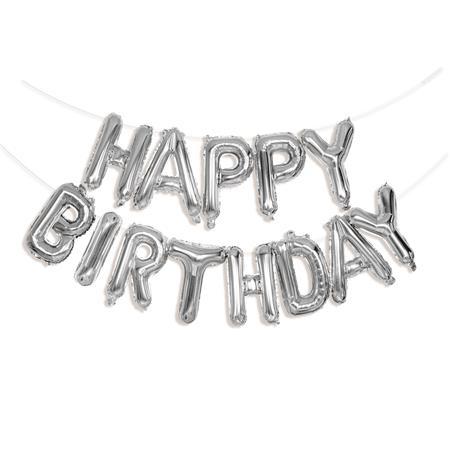 Léggömb, 40 cm, PUKKA PAD "Happy Birthday", ezüst