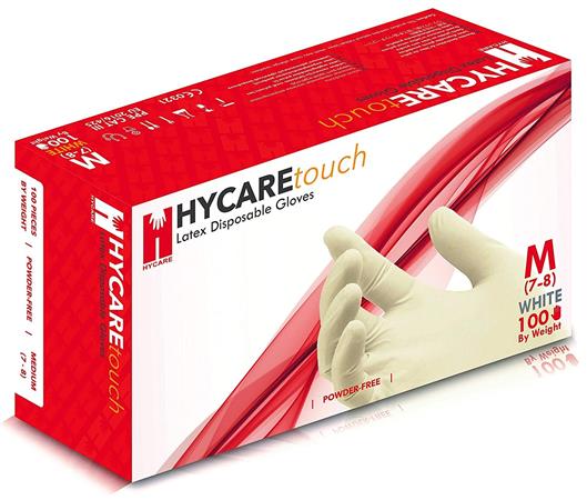 Egyszer használatos, púdermentes latex kesztyű, 100 db/doboz